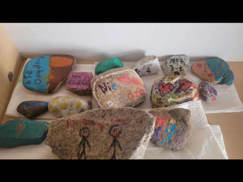 Jednym z elementów innowacji jest twórcza aktywność polegająca na pisaniu na kamieniach fragmentów Pisma Świętego oraz dobrych, budujących słów. Kamienie te stają się symbolem trwałości i siły pozytywnego przekazu – przypominają, że warto dzielić się dobrem i zostawiać po sobie ślad życzliwości.