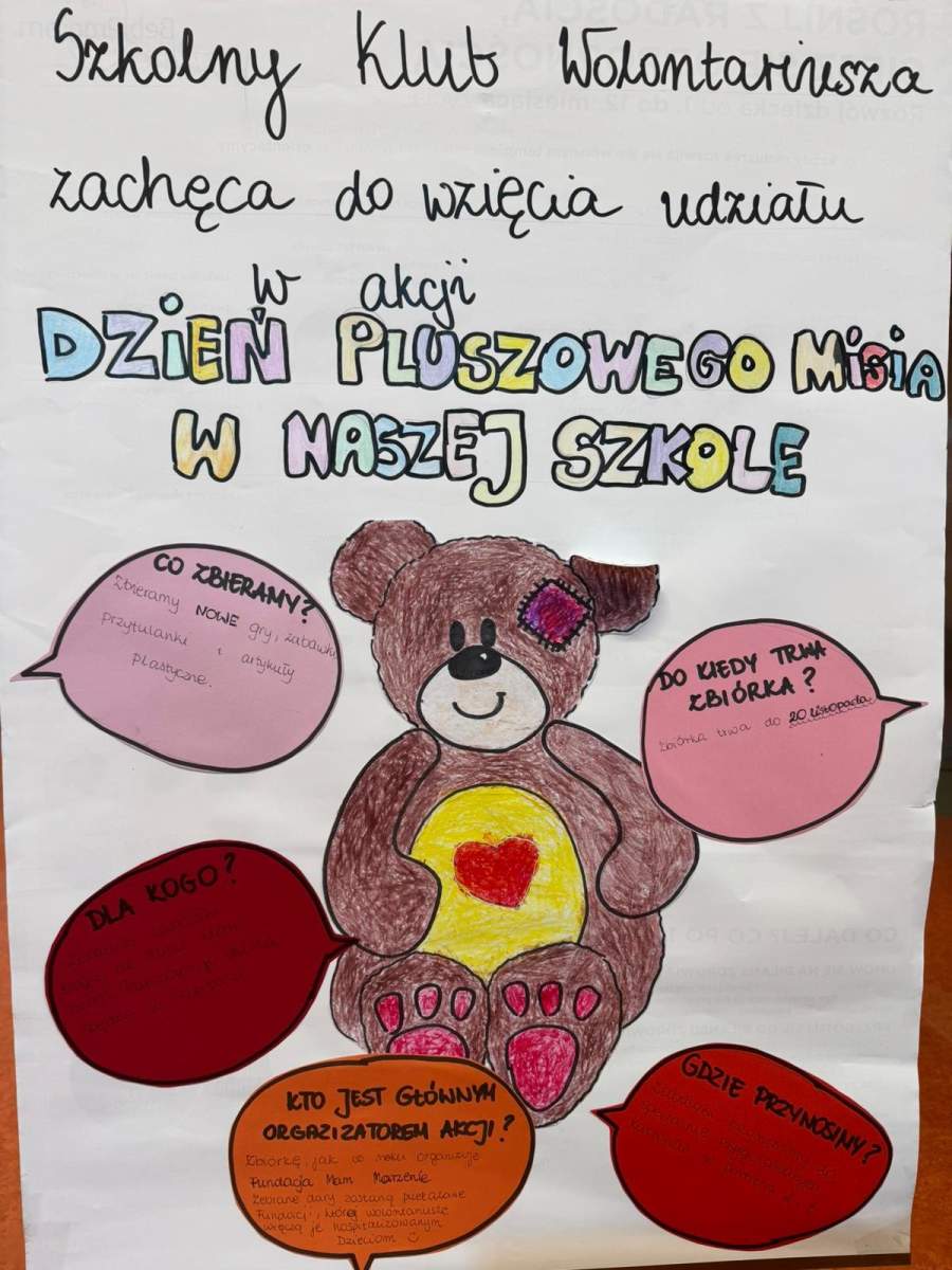 Zbiórkę pluszowych maskotek z okazji Dnia Misia, prowadzoną przez Fundację Mam Marzenie.