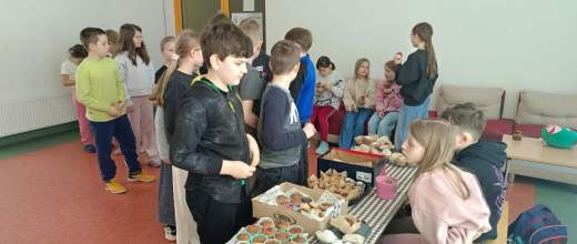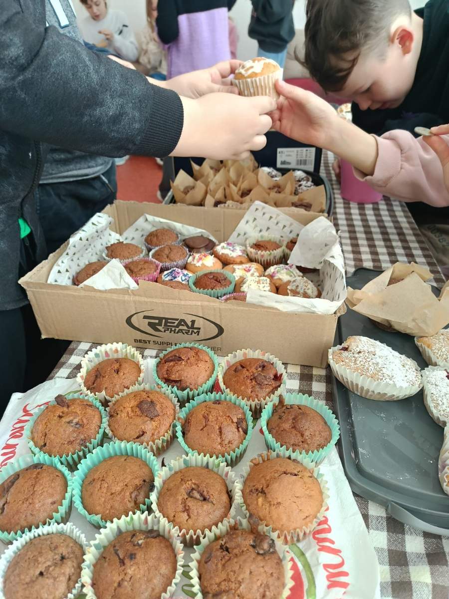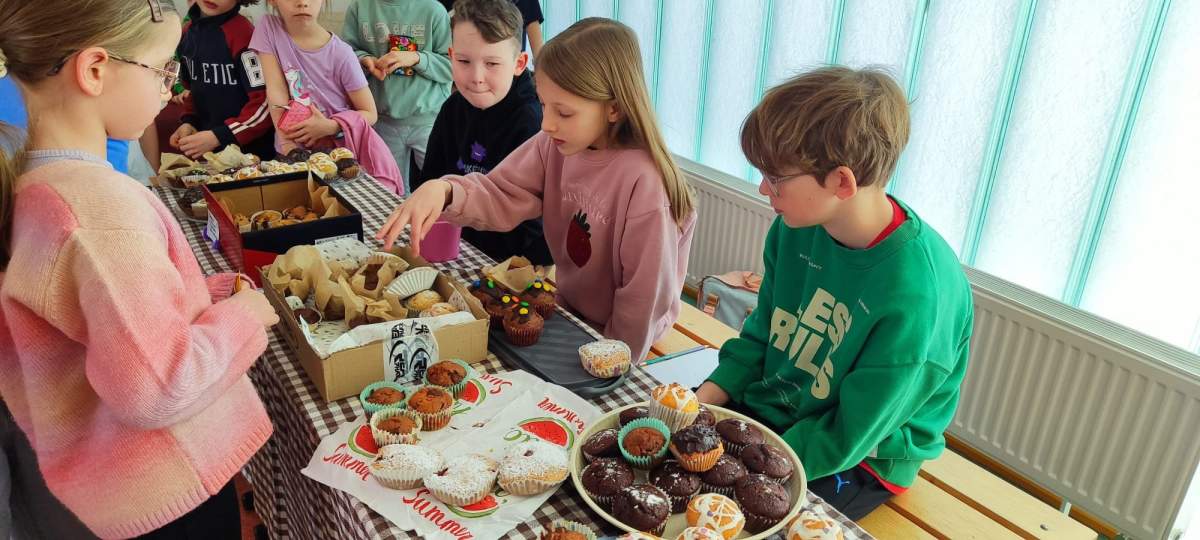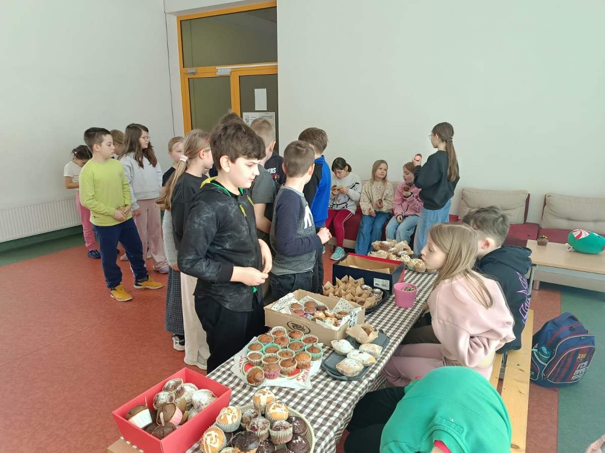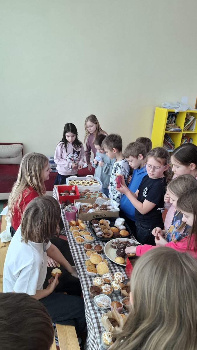 Akcja cieszyła się dużym zainteresowaniem – babeczki znikały bardzo szybko, a atmosfera była pełna radości i wspólnej zabawy. Całe wydarzenie było nie tylko okazją do słodkiej przerwy, ale także do rozwijania wśród uczniów postaw współpracy i zaangażowania w życie szkoły.