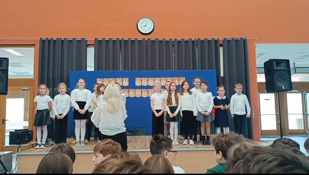13.10.2025 odbył się uroczysty apel z okazji Dnia Edukacji Narodowej. Drugoklasiści odśpiewali piosenki, a starszaki złożyły życzenia wszystkim pracownikom szkoły.