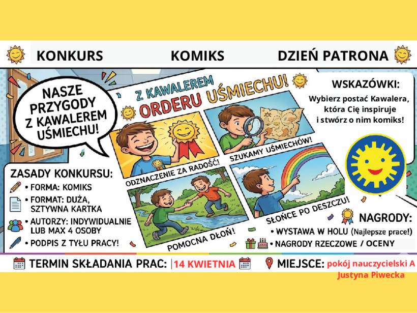Zbliża się Dzień Patrona naszej szkoły. Z tej okazji ogłaszamy konkurs, który połączy Waszą kreatywność z misją Orderu Uśmiechu!