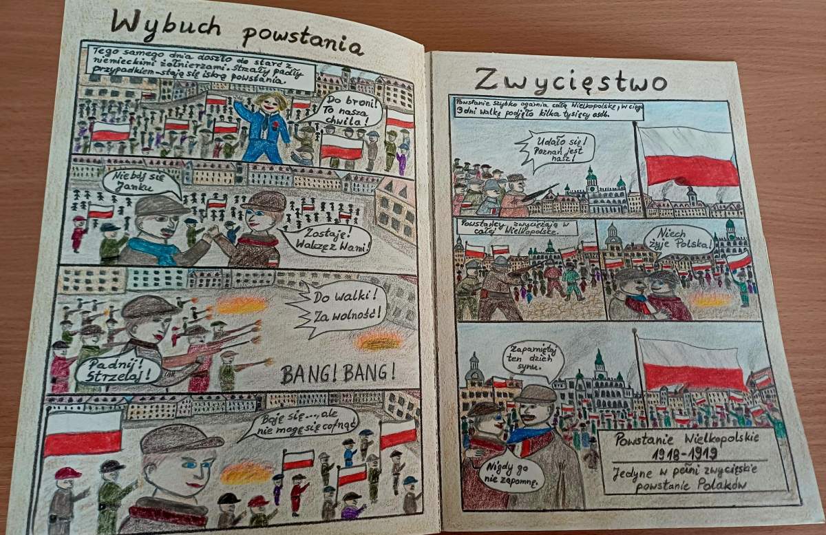 Uczniowie uczestniczyli w konkursie polonistyczno-historycznym pt. „Iskra Wolności”, nawiązującym do wydarzeń związanych z Powstaniem Wielkopolskim jednego z nielicznych zwycięskich powstań w historii Polski. Z dużym zaangażowaniem przygotowali komiksy przedstawiające wydarzenia i bohaterów powstania.