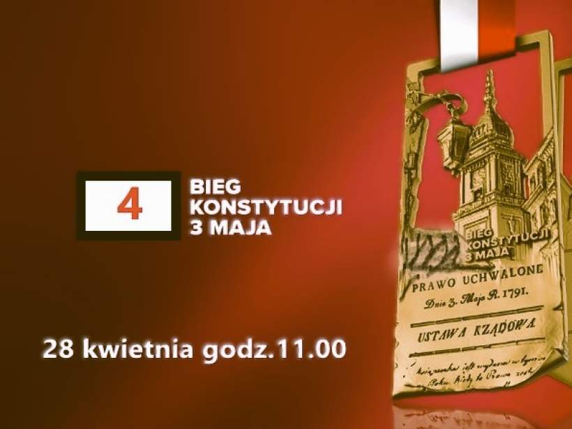 28 kwietnia 2026 ( wtorek) ok godz.11.00 odbędzie się IV Bieg z okazji Uchwalenia przez Polskę Konstytucji 3 Maja (dystans ok.3 km) na miejsca w kategoriach chłopcy i dziewczęta dla klas 6 , 7 , 8