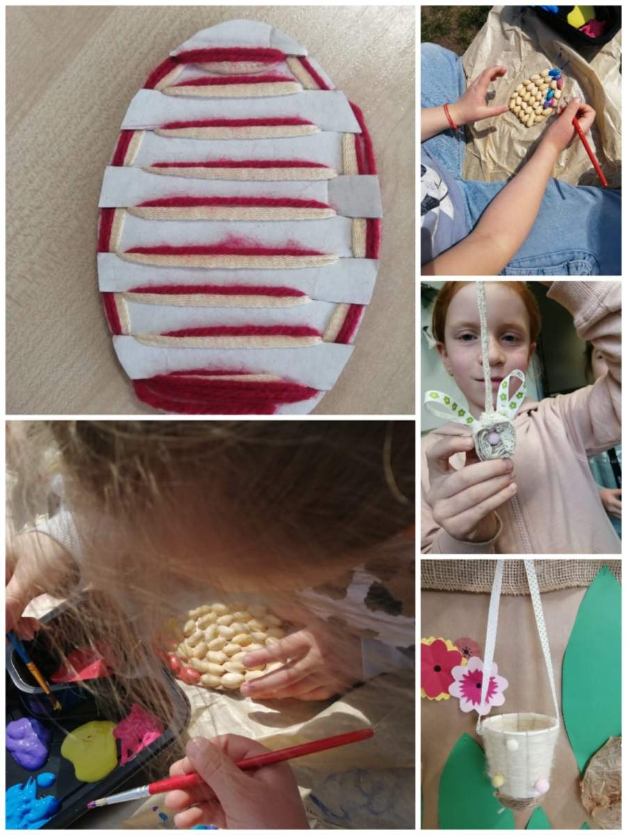 W świetlicy czuć było atmosferę zbliżających się Świąt Wielkanocnych. Dzieci z zaangażowaniem uczestniczyły w różnorodnych zajęciach plastycznych, podczas których tworzyły kolorowe pisanki, kartki świąteczne, wiosenne ozdoby oraz tradycyjne palmy wielkanocne.