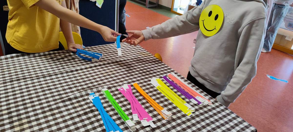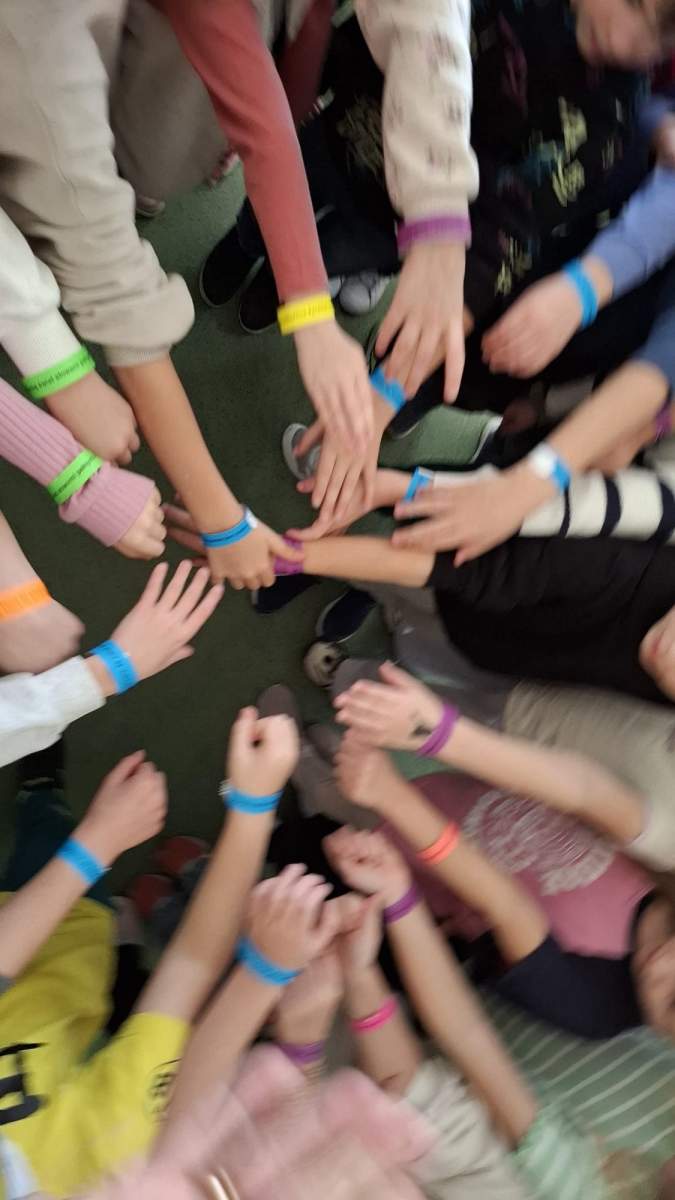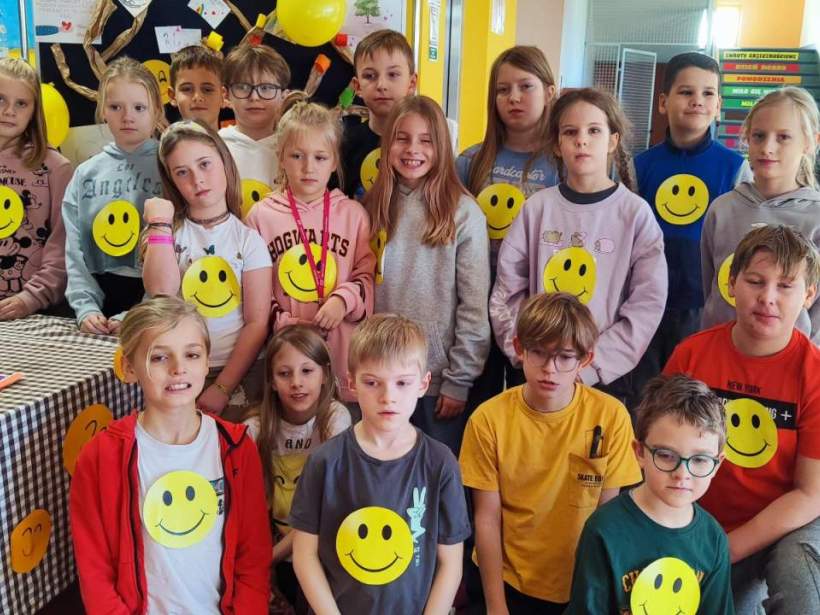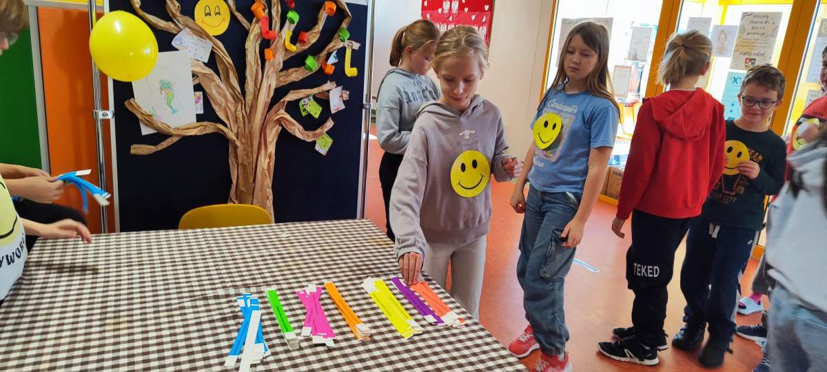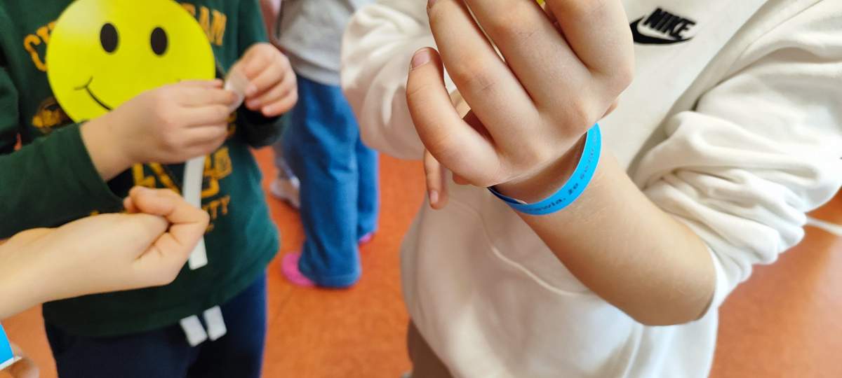 Szczególną atrakcją dnia była inicjatywa Małego Samorządu Uczniowskiego, który obdarował wszystkich uczniów papierowymi opaskami na rękę z inspirującymi hasłami o życzliwości. Ten symboliczny gest ma przypominać, jak ważne jest codzienne budowanie kultury szacunku, empatii i uśmiechu.