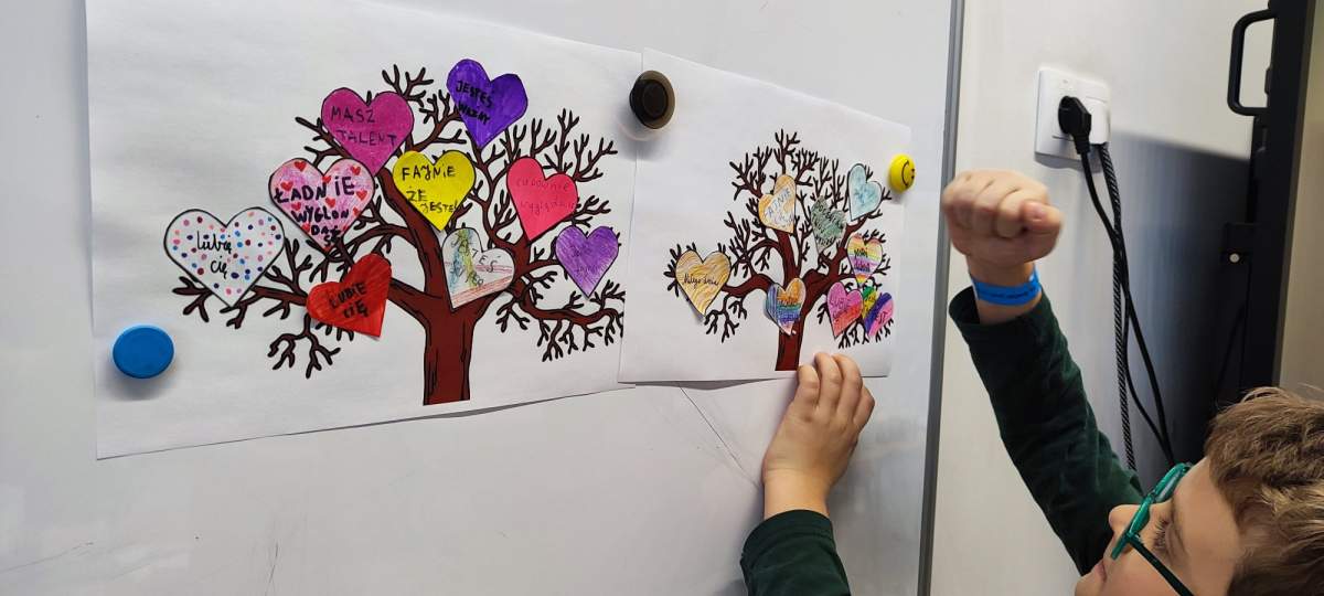 W naszej szkole obchodziliśmy w piątek 21 listopada Dzień Życzliwości, który stał się okazją do promowania serdeczności, uprzejmości i pozytywnej komunikacji wśród całej społeczności uczniowskiej. Uczniowie przygotowywali miłe słowa i życzliwe hasła, tworząc z nich symboliczne Drzewo Życzliwości, które wypełniło się kolorowymi serduszkami pełnymi dobroci.