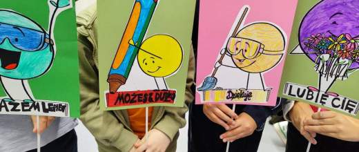 Dzieci wymyślały także własne „słowa mocy”, a następnie przeniosły je na prace plastyczne, plakaty, tworząc barwne, pełne emocji i przesłania dzieła. Dzięki temu mogły przekonać się, że słowa mają moc – potrafią ranić, ale też leczyć, wspierać i inspirować.