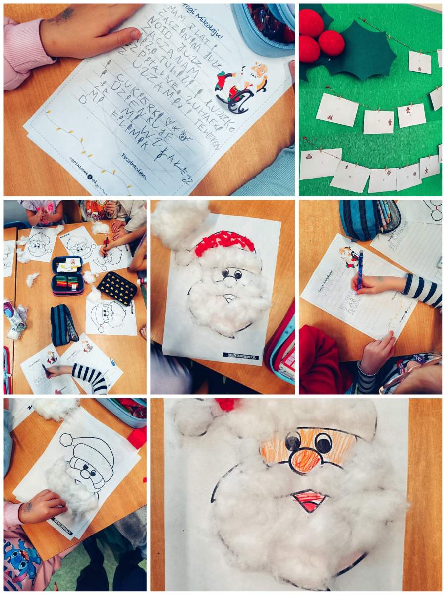 Podczas zajęć świetlicowych uczniowie z dużym zaangażowaniem pisali listy do Świętego Mikołaja, tworzyli świąteczne prace plastyczne oraz własnoręczne ozdoby, którymi udekorowali świetlicę. Nie zabrakło również wspólnych zabaw, gier oraz nauki piosenek i kolęd, które wprowadzały wszystkich w wyjątkowy, świąteczny nastrój.