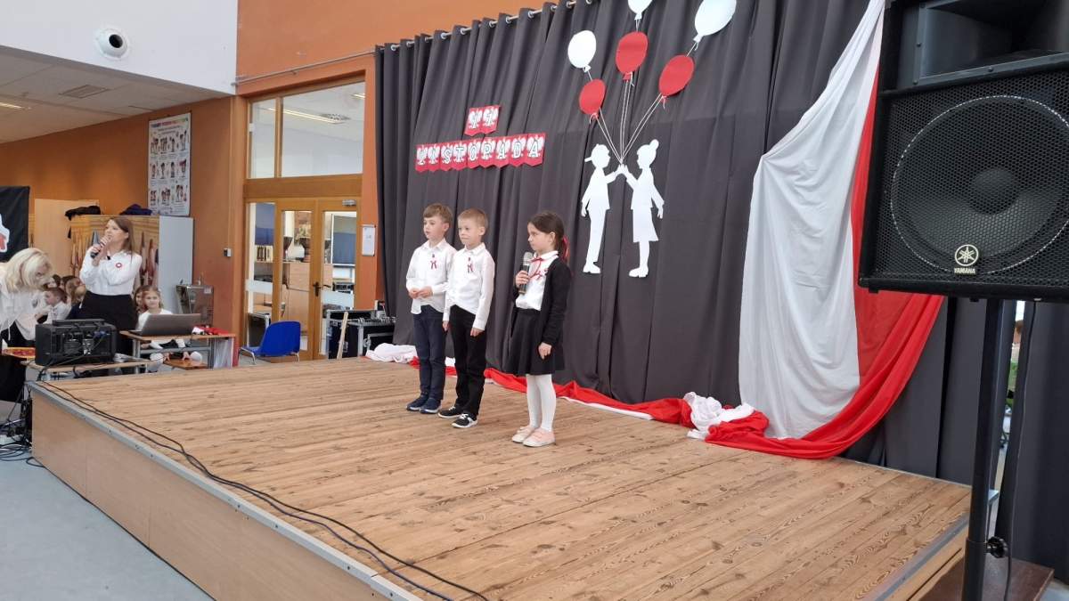 W części artystycznej uczniowie zaprezentowali montaż słowno-muzyczny, przybliżający najważniejsze wydarzenia prowadzące do odzyskania przez Polskę wolności w 1918 roku. Recytacje przeplatane pieśniami patriotycznymi stworzyły podniosłą atmosferę i pozwoliły wszystkim zgromadzonym przenieść się w czasy walki o niepodległość.