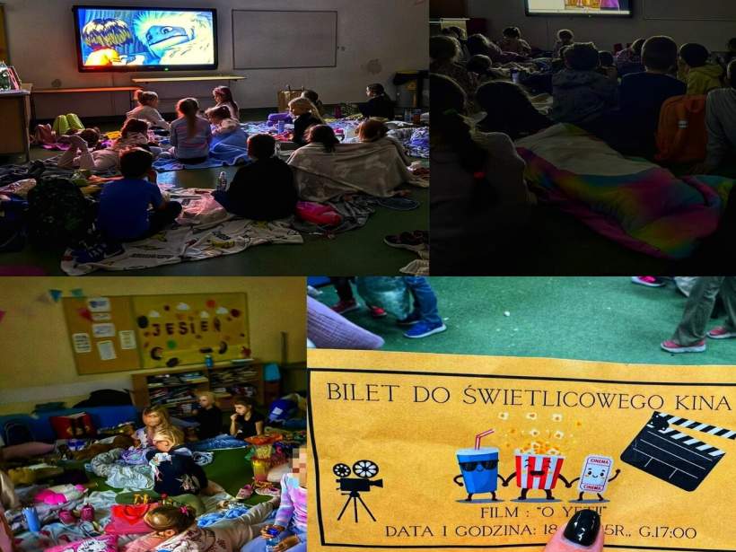 W trakcie seansu panowała ciepła, radosna atmosfera. Dzieci chętnie dzieliły się wrażeniami, komentowały zabawne sceny i przeżywały filmowe emocje. Tego typu wydarzenia to nie tylko świetna zabawa, ale także okazja do integracji oraz rozwijania wrażliwości i wyobraźni.