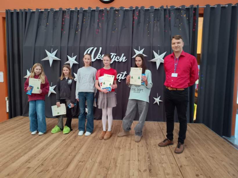 W dniu 16 grudnia 2025 odbyła się kolejna już edycja wokalnego konkursu świątecznego, podczas którego uczniowie naszej szkoły mogli zaprezentować swoje wspaniałe umiejętności i zadośćuczynić świątecznej tradycji obchodów Świąt Bożego Narodzenia. Konkurs przyniósł nam wiele radości, pięknych występów i wrażeń, lecz był także dobrą lekcją i okazją do zdobycia nowych doświadczeń artystycznych, poznania innych uczestników prezentujących swoje umiejętności i pasję do śpiewu.